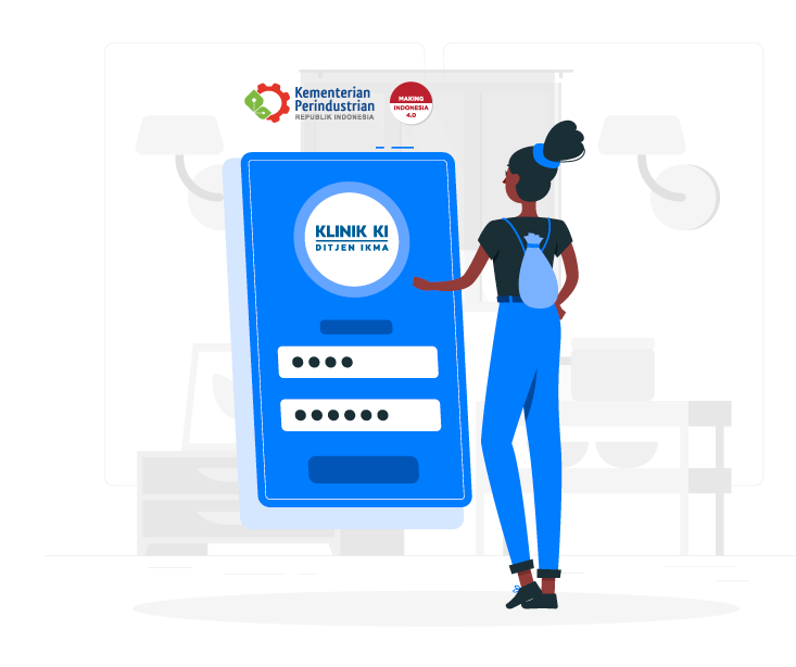 https://klinikki.kemenperin.go.id/administrator/registration kemudian pilih Daftar Untuk mendapatkan Username dan Password. -